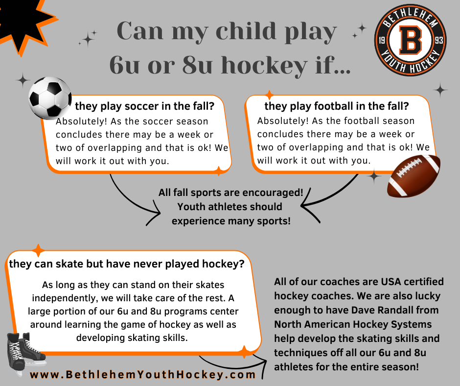 This program is recommended for players who can independently stand on their skates and ready to learn the sport of hockey!